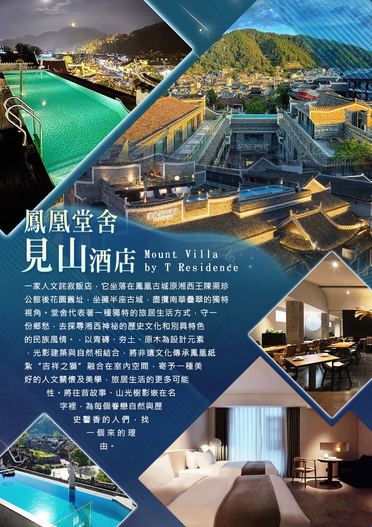 住宿:保證入住(鳳凰古城Instagram打卡酒店第1名) 鳳凰堂舍·見山酒店~特別安排酒店頂樓酒吧觀古城夜景(贈送氣泡水 或 雞尾酒一杯) 或同等級