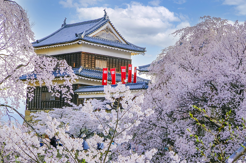 擁有日本12座現存天守當中天守閣最古老的城堡。日本所有的城堡當中,松本城唯一未遭遇破壞,以400年前當時的樣貌保存下來,非常珍貴。因為外觀釉黑,所以擁有別名「烏城」。松本城與姬路城、彥根城、太山城同稱為日本4大國寶級城堡,城堡周圍作為公園對外開放,園內四季風景優美,春天雪片般櫻花,夏天綠意盎然,秋天火紅的楓葉,冬天的雪景,使松本城成為松本市的象徵。現存大天守閣以及小天守閣、渡櫓等均為國寶。松本城跟其他的城堡一樣,四處都有禦敵的策略設計如敵人兵臨城下時向下倒滾油、沸水的活門,彎曲的道路橋樑使敵人無法長驅直入,厚達近30公分的城牆、遍布高點的槍孔、幾近垂直的樓梯與間隔距離超大的台階等。之後到了和平的時代,增建月見橹,以作為享樂之用。設有月見橹的城堡不多也是松本城的特徵。