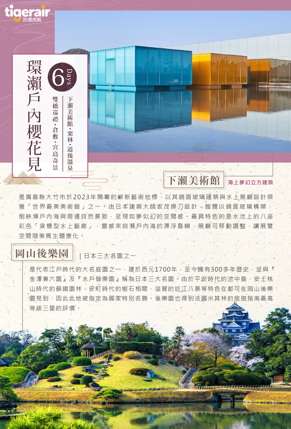 今日搭乘虎航包機飛往位於日本岡山縣岡山市的主要機場,有「岡山桃太郎機場」之稱的~岡山空港。抵達後接往下榻酒店休息。