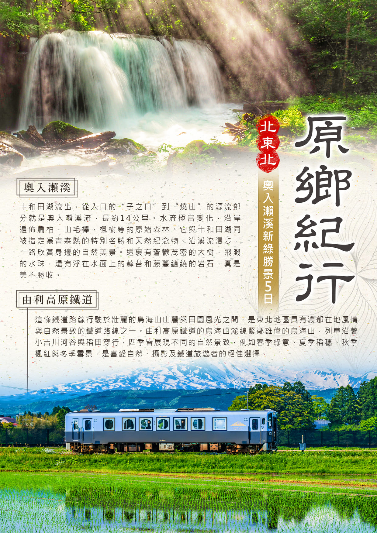2026/04/04(六) | 高雄-小港機場出發 入春 IT【日本北東北原鄉紀行】十和田湖奧入瀨溪流新綠勝景.松島海岸・角館田澤湖・銀山溫泉街・由利高原鐵道5日機位 30 候補0 已售0 可售29夏天的東北~藍天.白雲.綠葉.天氣涼爽~絕加拍照景色!!! |