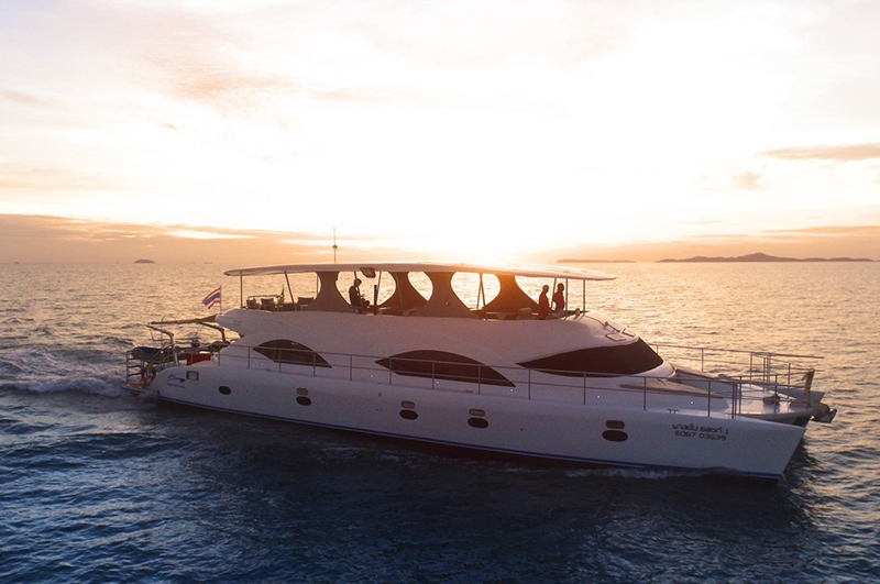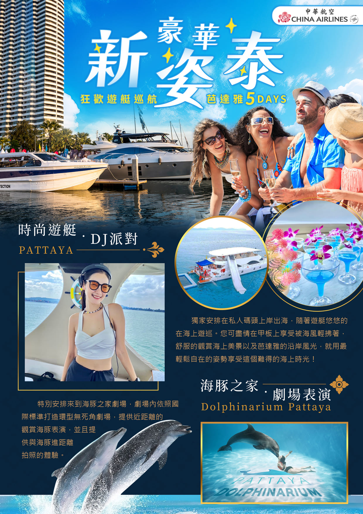 ◆時尚遊艇出海趣:千萬時尚遊艇俱樂部:獨家安排在私人碼頭上岸出海,隨著遊艇悠悠的在海上遊巡。您可盡情在甲板上享受被海風輕拂著,舒服的觀賞海上美景以及芭達雅的沿岸風光,就用最輕鬆自在的姿勢享受這個難得的海上時光!途中,船上的隨行人員還貼心的送上點心,並安排海釣。※注意事項:出海當天上午如遇風浪太大,則將改為下午出海,如遇全天都風雨交加影響,因安全考量無法出海,導遊當天將退費每人1,800泰銖。※注意事項:基於環保及生態保育,貴賓釣上來的魚不會進行烹煮,船家將回收野放,敬請見諒。