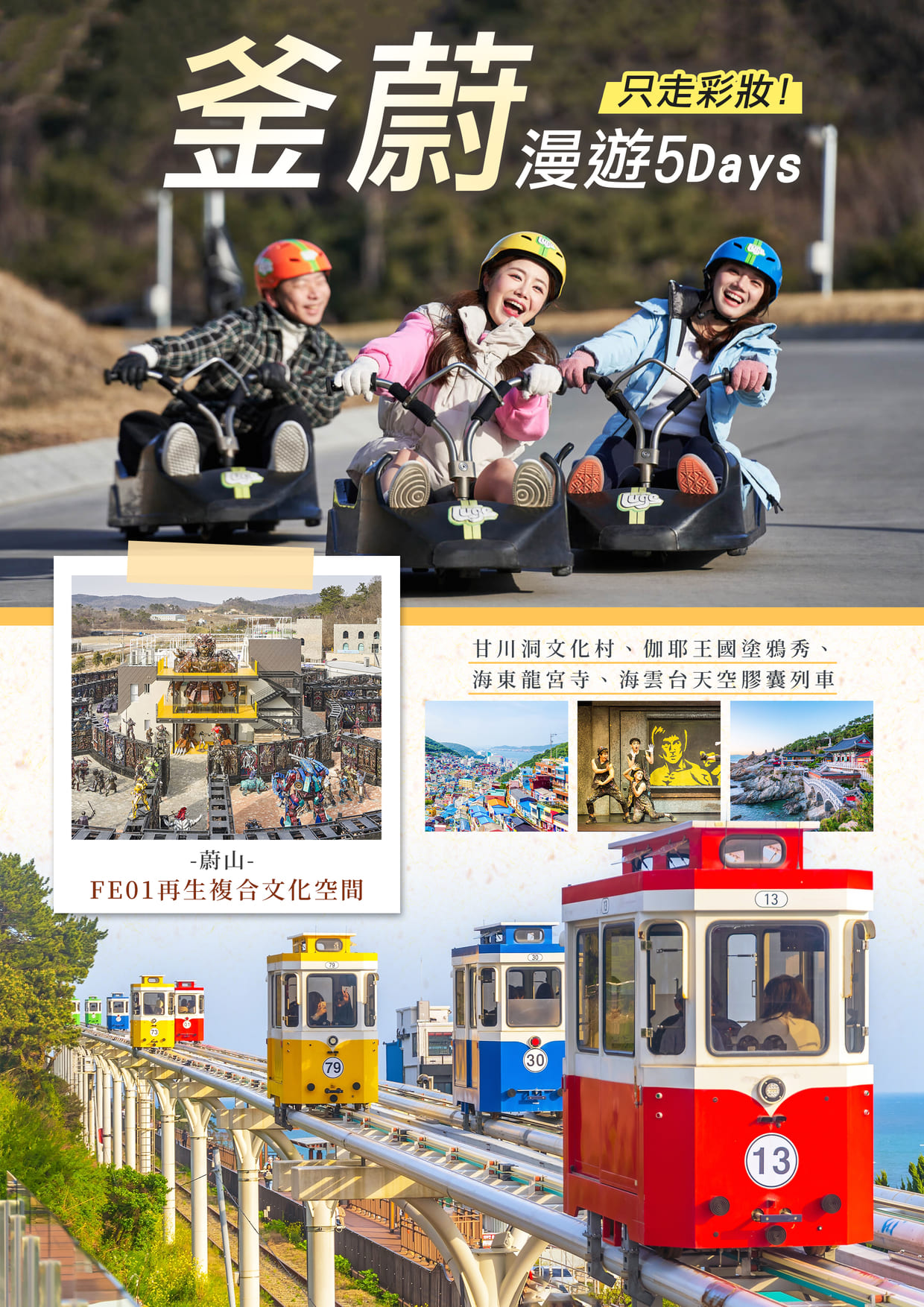 釜蔚漫遊5日~超人氣~膠囊列車.白險灘文化村.LUGE斜坡車.塗鴉秀《只走彩妝》